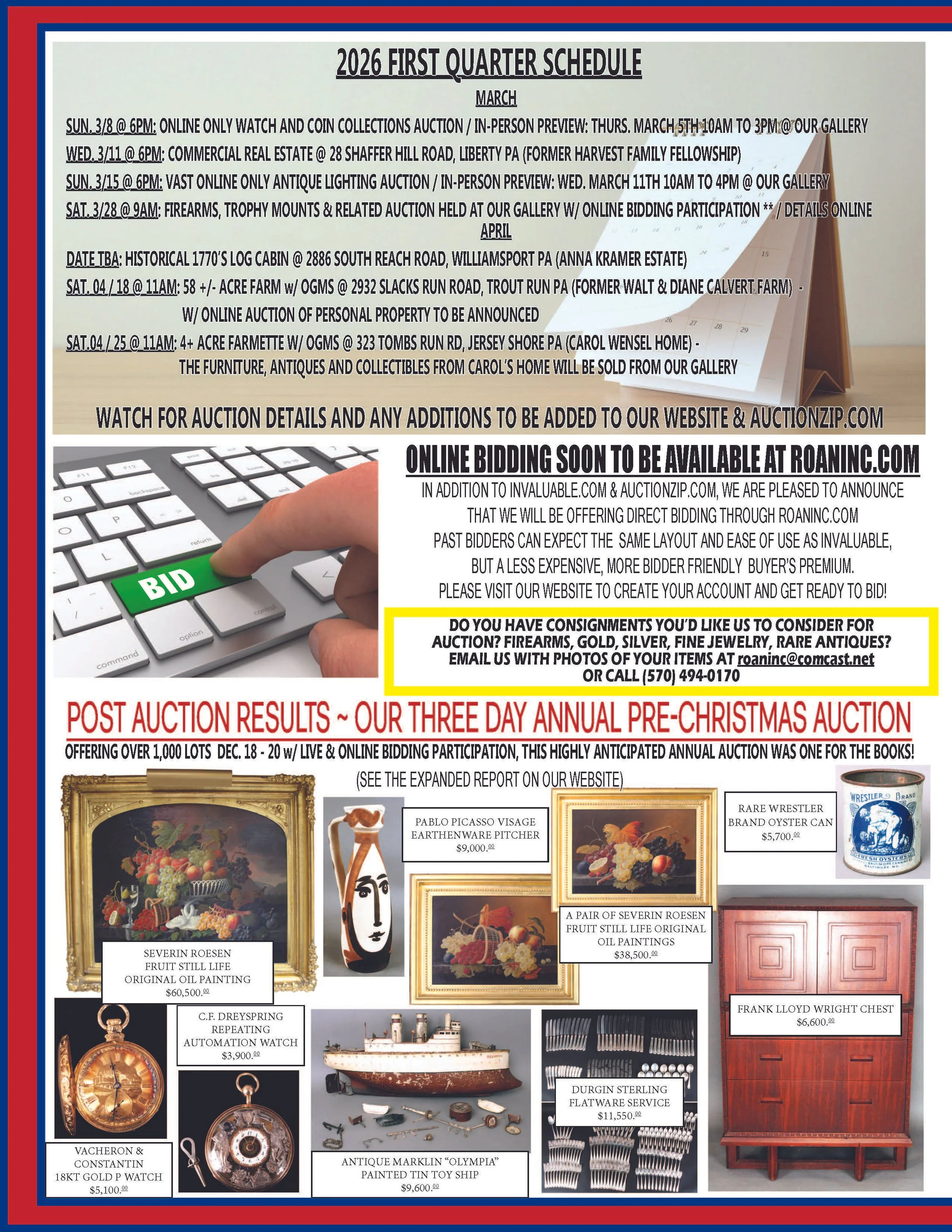 ROAN Inc. accepts Absentee Bids for all auctions and Phone Bids for most auctions when possible. Please feel free to contact our office for additional information and help setting up your bid.