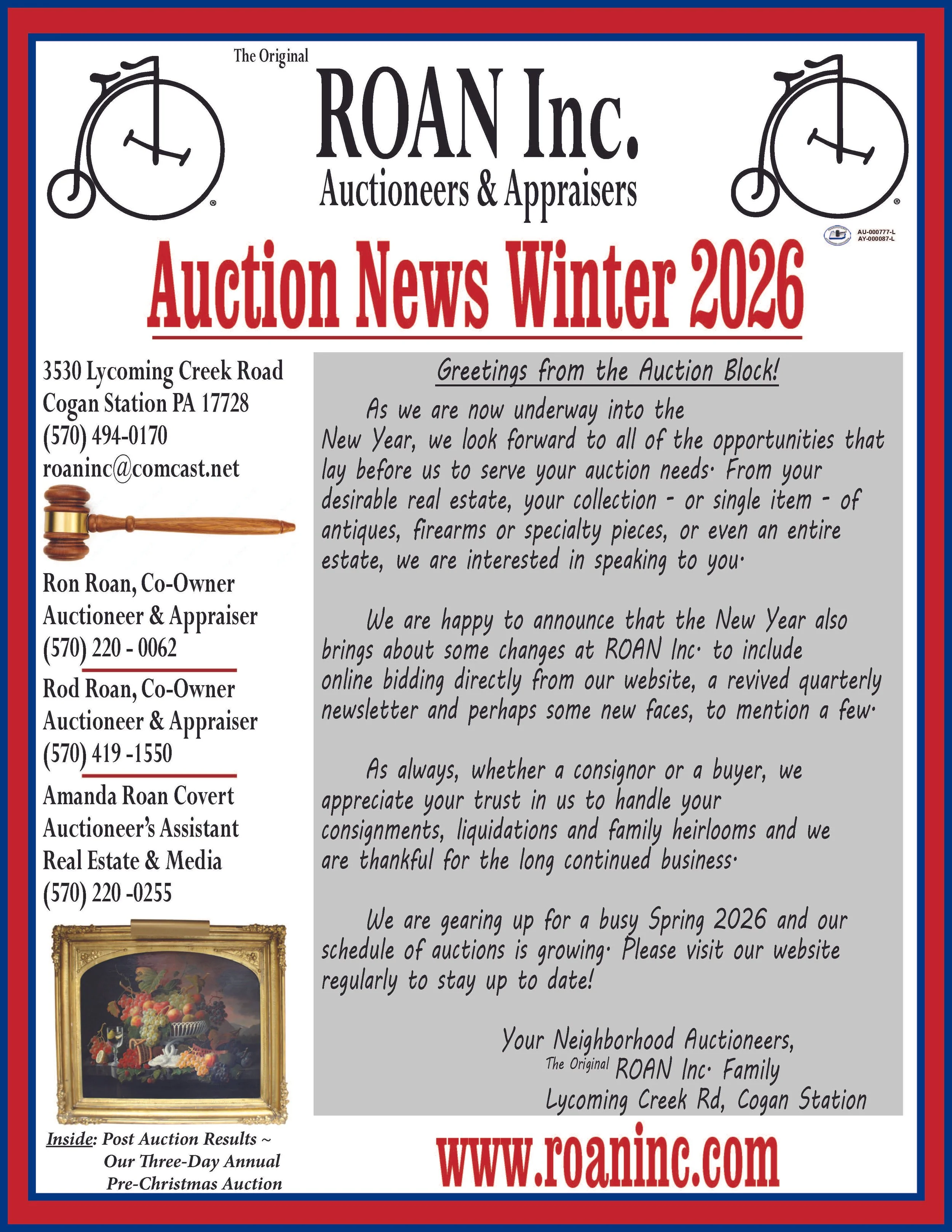 Thank you to all the readers of our hometown newspaper The Williamsport Sun-Gazette for their vote of support in giving ROAN Auctioneers & Appraisers this year’s Reader’s Choice Award for Best Auctioneer!